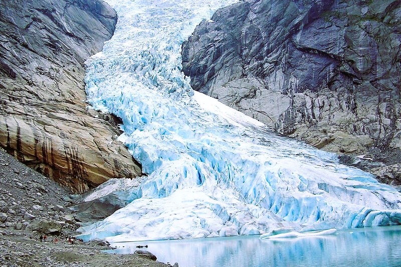 一方、底部の氷は圧力によって徐々に変形し標高の低い方にゆっくりと流れていく。これが一般的に山岳氷河と呼ばれているものだ。一方南極大陸などの広大な面積を覆う大陸氷河がある。